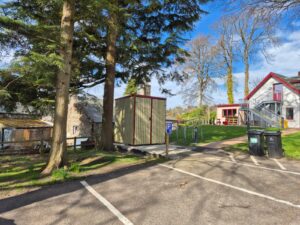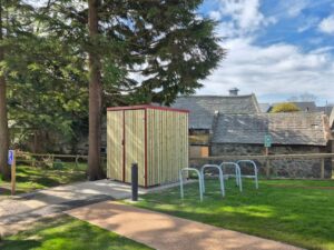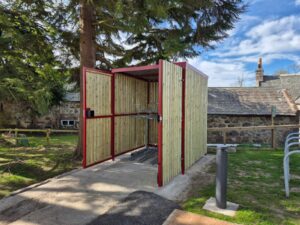 The project began with the design and installation of a bespoke Trinity Timber Two-Tier Bike Shelter, providing a secure, space-efficient solution tailored specifically to the needs of Camphill Rudolf School. This timber-clad shelter was custom built in both size and finish to suit the site’s footprint and to complement the surrounding environment, ensuring a visually appealing addition to the projects grounds.