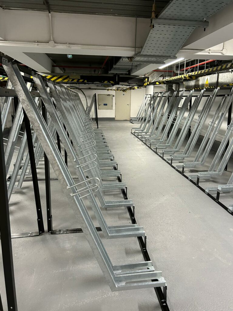 Secure Cycle Store were involved in the Design, Supply and Installation of 212 semi-vertical bike racks to help them meet their objective. Their plans had a designated internal storage are in the basement to locate the bike racks.