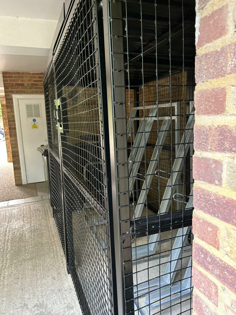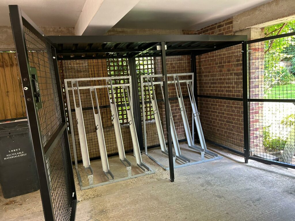 We supplied a galvanised steel Merton Mesh cycle shelter with mesh panels on all sides, creating a fully secure enclosure that allows natural surveillance from the surrounding area. This open visibility is a key deterrent to theft.
