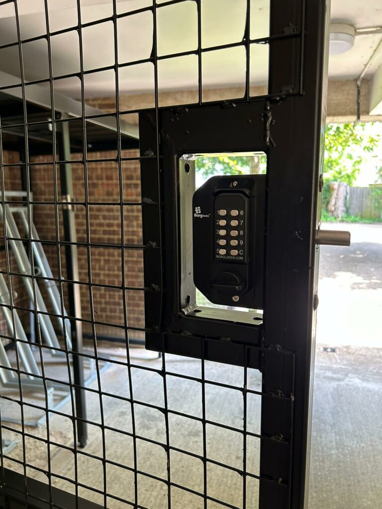 Access to the shelter is provided through swing mesh front gates fitted with double-sided digital combination locks. This solution ensures secure and convenient entry for authorised users, eliminating the need for keys while allowing controlled access from both sides and is practical for high-frequency daily use.