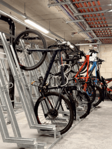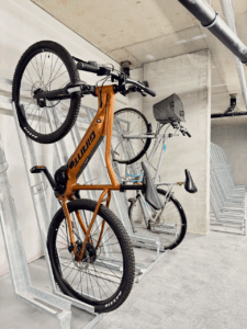 The system, holding 244 bicycles, was expertly fitted on the building’s ground floor, with all units customised to integrate seamlessly within the allocated space.