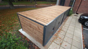 Our 12 Space Timber Clad Bike Shelter, Covering Previously Installed Sheffield Bike Stands.