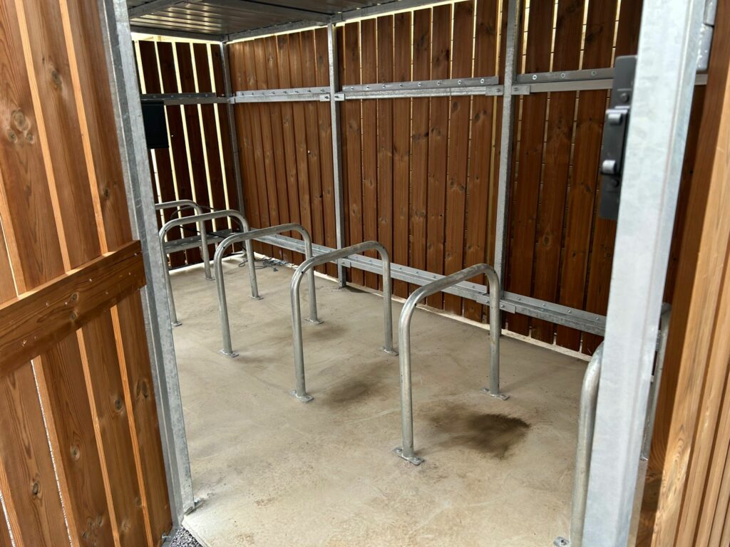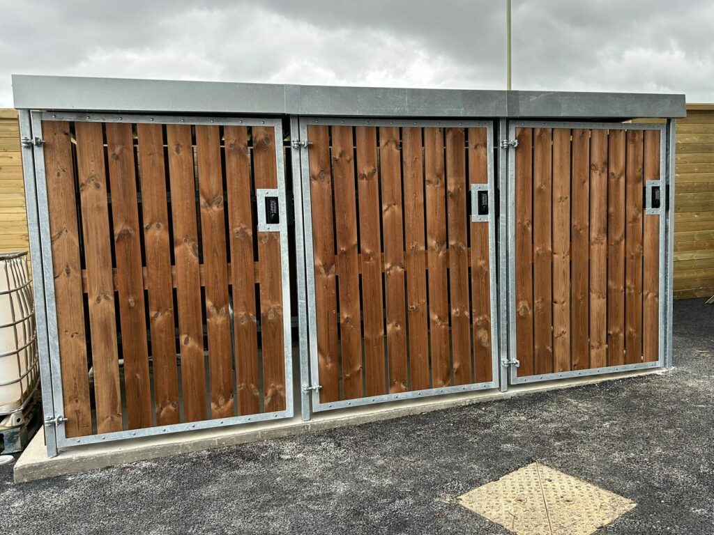 The finished installation now provides a practical, secure and visually appealing cycle storage facility that enhances the functionality of the site while encouraging sustainable transport.